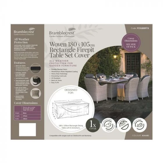 Bramblecrest Bramblecrest Cover 180x105cm Rectangle Firepit Table Set Cover – Khaki