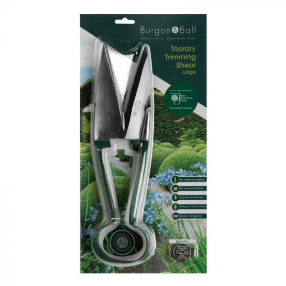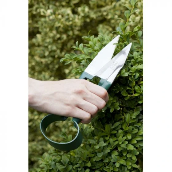 Exceptional performance precision cutting tool – trims topiary to perfection. Single handed use leaves one hand free to fluff up foliage. To use simply hold handles in the palm of your hand and squeeze the blades together.