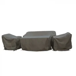 Bramblecrest 3 Seat Sofa With 2 X Sofa Chairs & Rectangle Casual Dining Table Set Cover Khaki